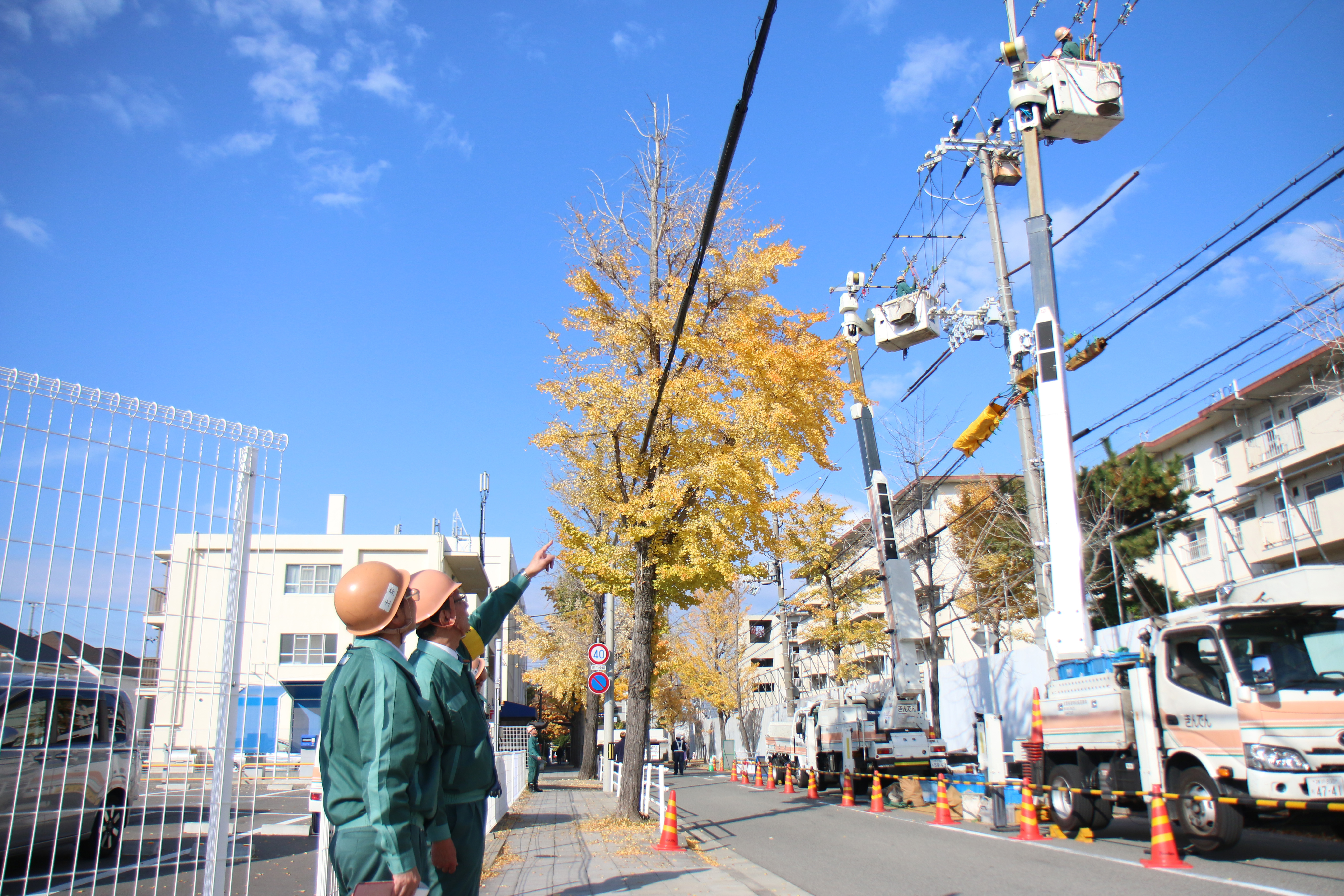 続く現場激励パトロールでは、兵庫県西宮市内で設備改修に伴う機器取替工事を間接活線工法で行う施工第21チームと、同県宝塚市内で宅地増設に伴う引込線新設工事を行う施工第6チームの現場を訪問しました。 上坂社長は土井所長や作業指揮者であるチームリーダーに施工内容や現場の状況を確認。厳寒期を迎える中、懸命に作業へ取り組む施工チーム員の様子を熱心に見守り、ねぎらいの言葉を掛け、現場を後にしました。 上坂社長は今後、同運動期間中に東北支社の現場も訪問する予定です。
